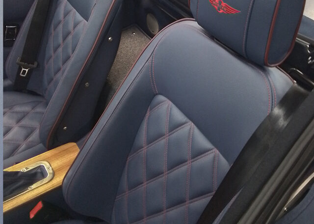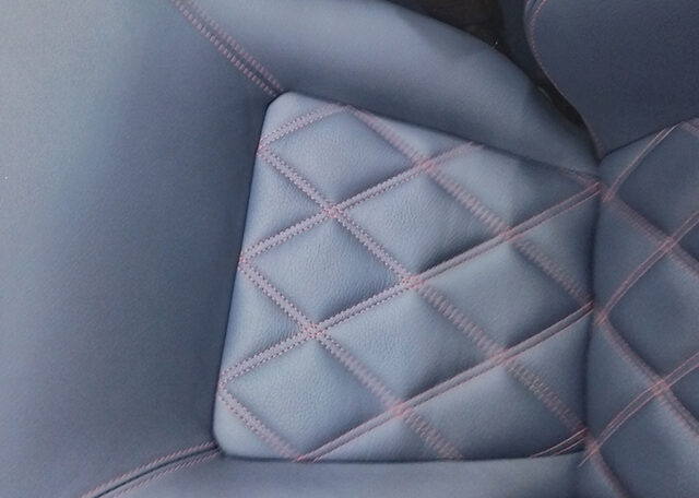 • Diamond Pane twin stitched Seats in Morgan British Blue leather, stitched